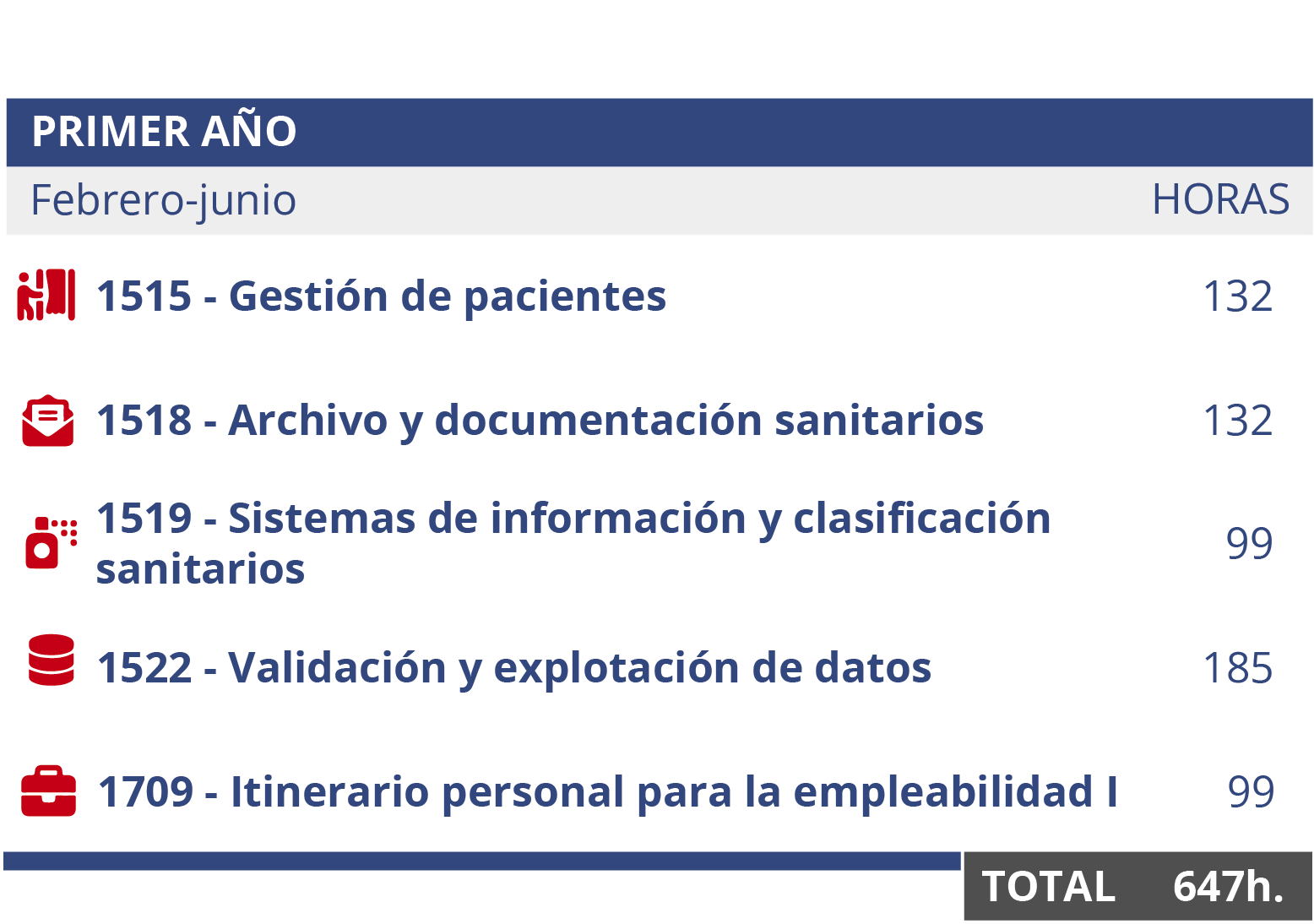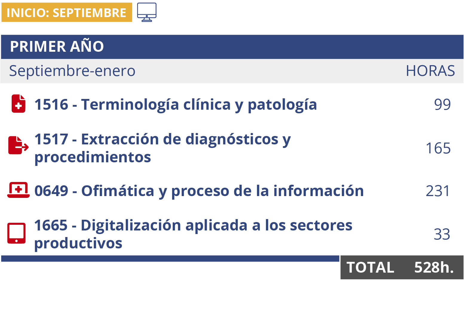 Plan de estudios: asignaturas de la formación de Documentación Sanitaria a distancia