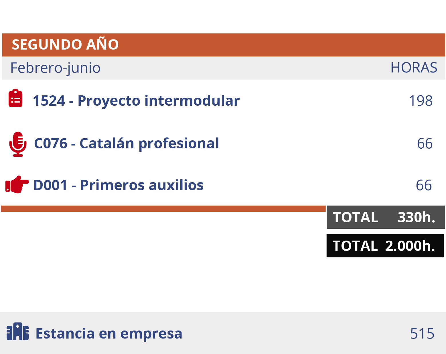 - Prácticas: 515 horas prácticas